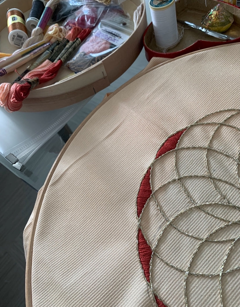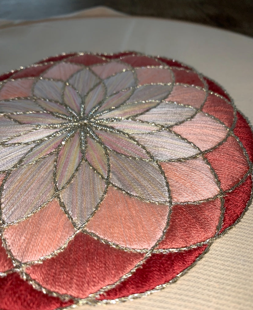 Tambour brodé rosace
